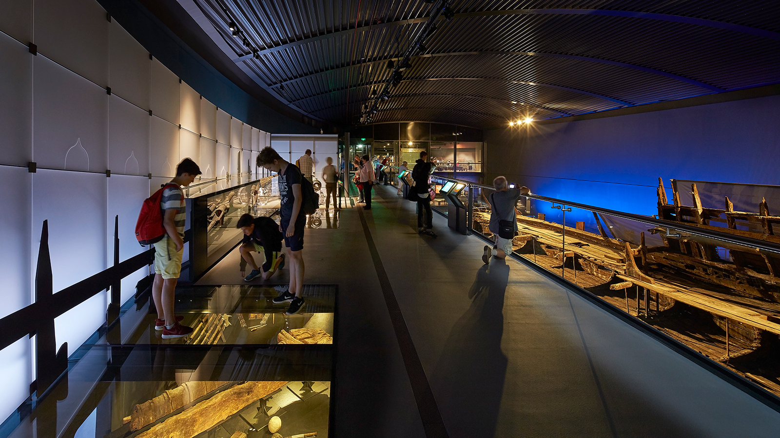 Our mission was to remove the ‘hot box’—a fully insulated structure that cocooned the ship during the conservation process—and install permanent glazed screens on two levels. An open viewing deck with airlock chambers was crafted on the upper deck. Strict environmental controls were essential to maintain constant temperature and humidity levels, crucial for the ship's preservation. Temperature was meticulously kept at 19ºC and humidity at 54%, vital for the artefact's stability and longevity. Contractors entered the site through an airlock, diligently monitoring conditions.